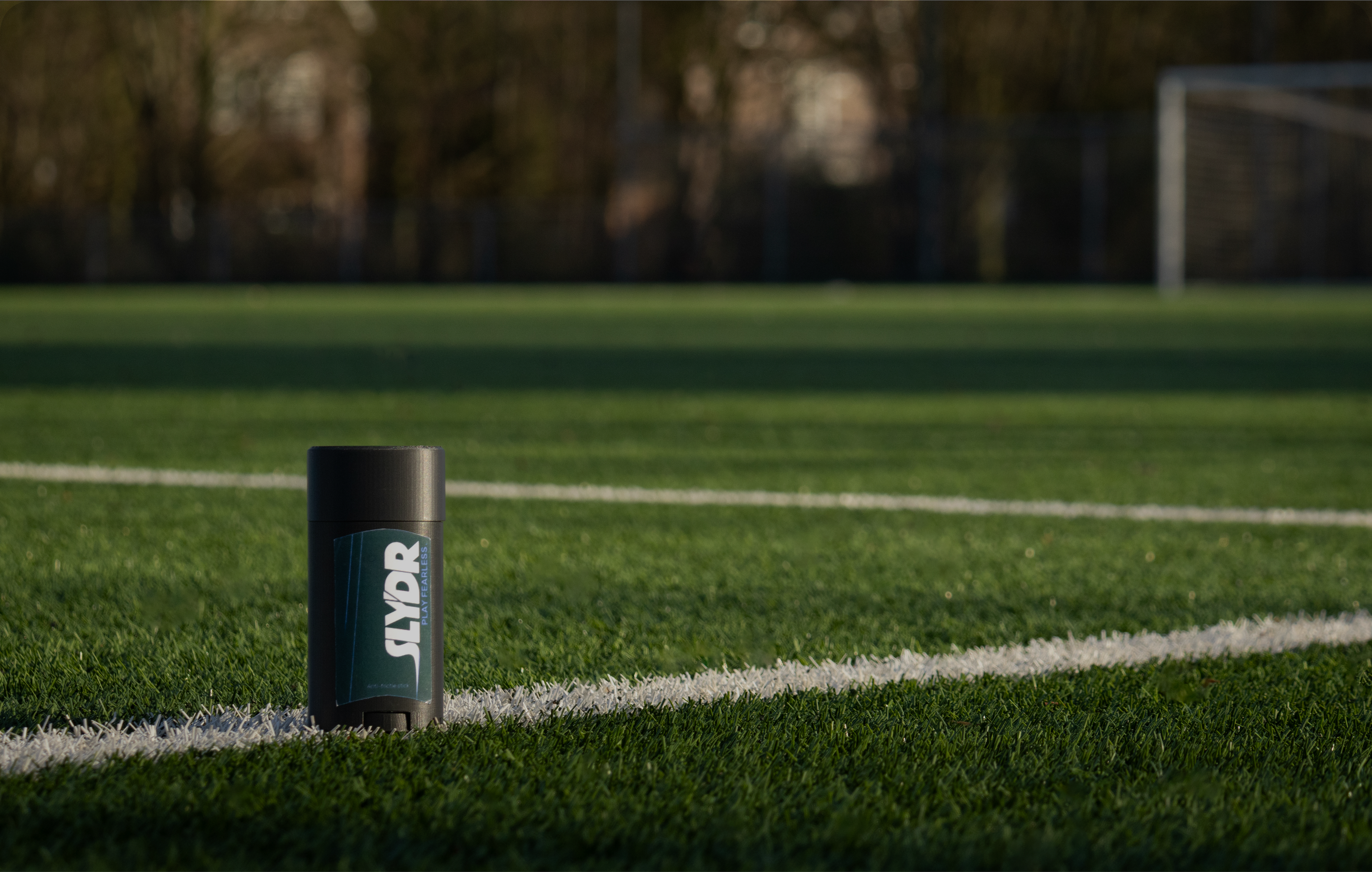 SLYDR is een beschermende stick voor voetballers die regelmatig slidings maken op kunstgras. Dankzij de handige verpakking kun je het snel en precies aanbrengen op de huid, zonder dat er product verloren gaat. De stick is zo ontworpen dat hij makkelijk over de huid glijdt en direct een beschermende laag vormt, ook op plekken die normaal snel beschadigen door het kunstgras zoals de heupen, bovenbenen en zijkant van het lichaam.